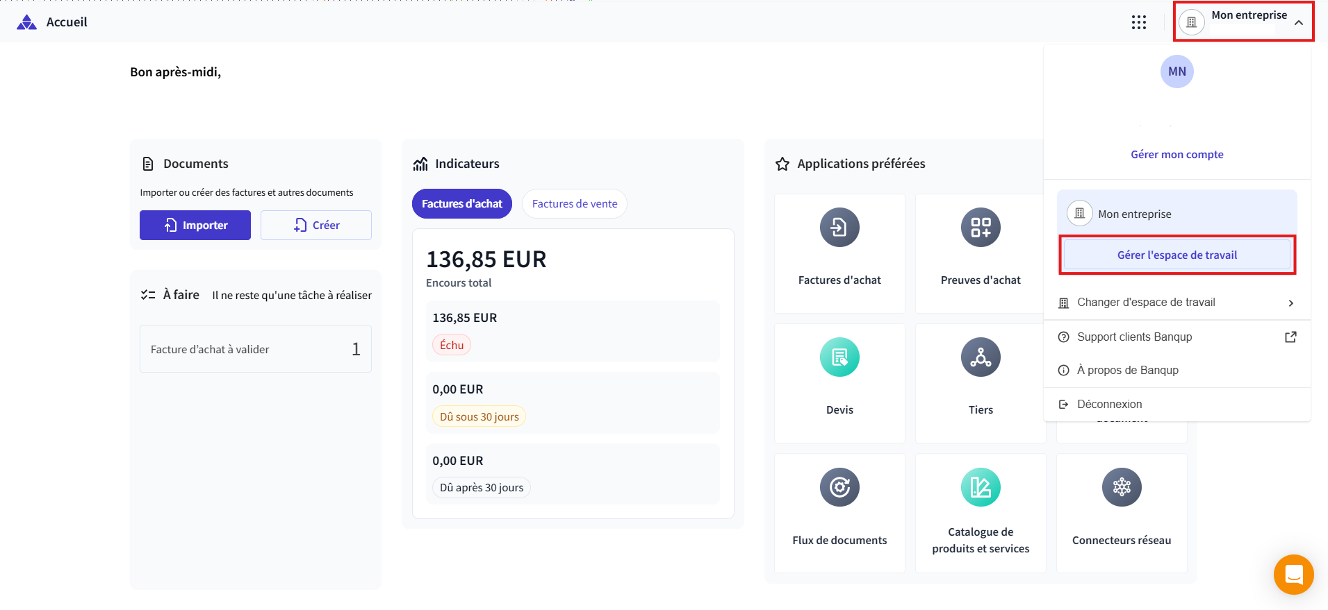 Une fois votre compte créé et validé sur la plateforme d’e-facturation, finalisez sa configuration.