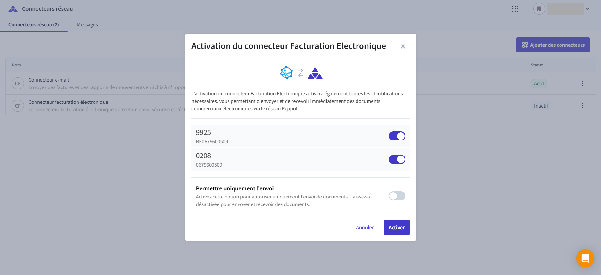 3. Activer le connecteur PEPPOL / Facturation électronique
